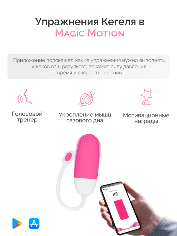 Также, в приложении имеются специальные тренировки мышц тазвого дна, что делает "игрушку" для удовольствия полноценным тренажером Кегеля!