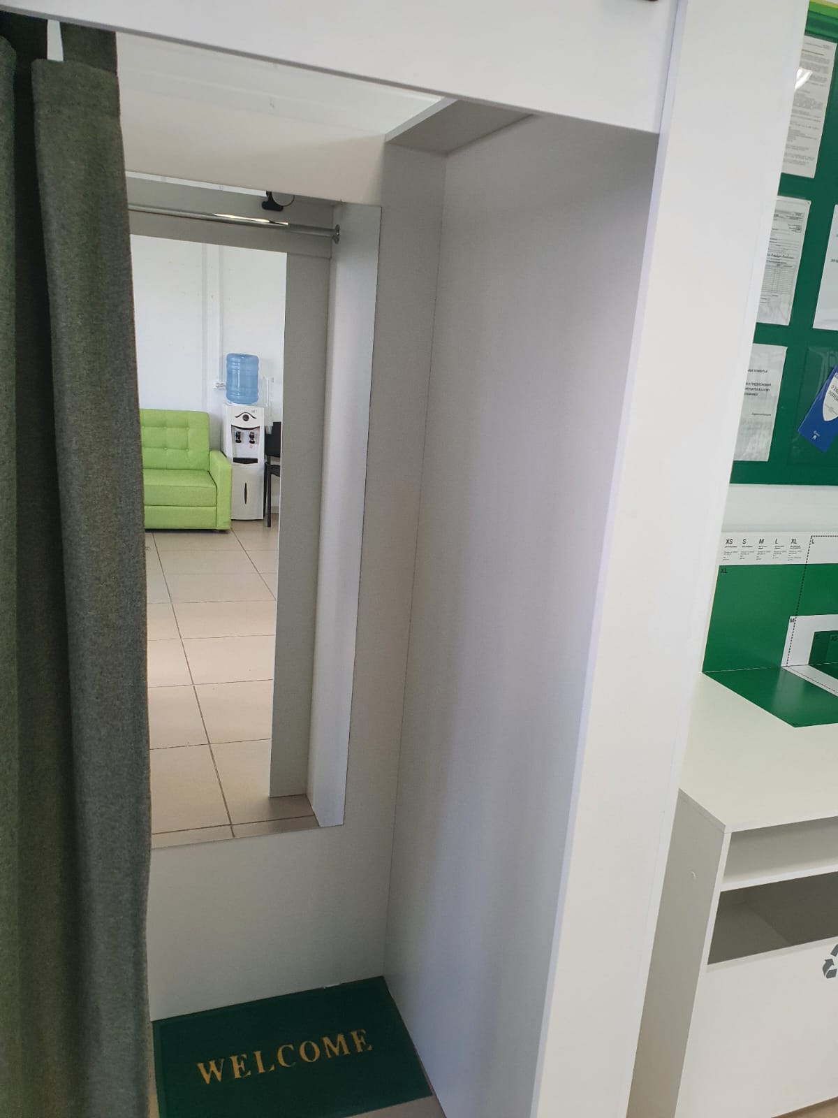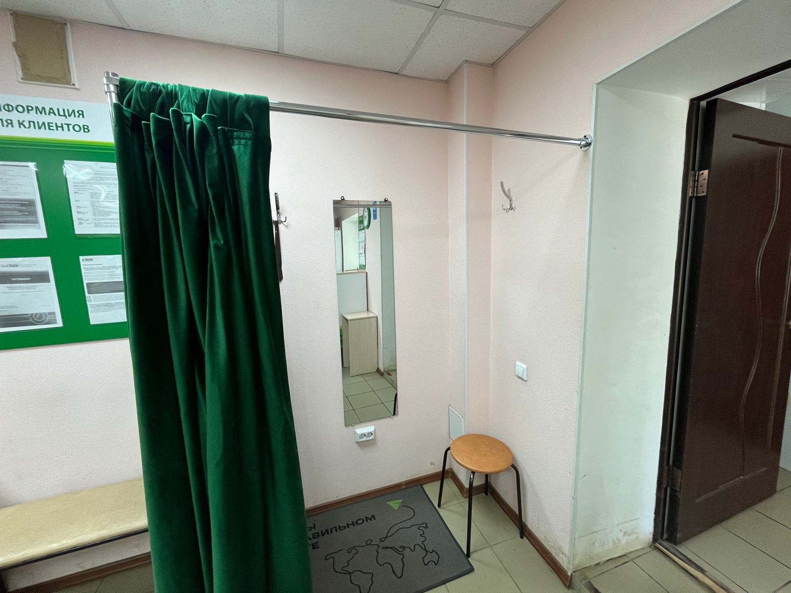 Войти в отделение банка Совкомбанк через центральный вход, на 1 этаже расположен постамат.